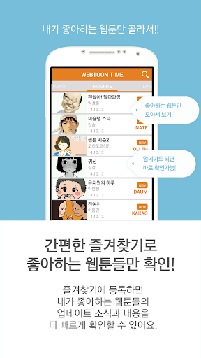 - 내가 좋아하는 웹툰을 즐겨찾기에 등록하여 업데이트 즉시 볼 수 있어요.