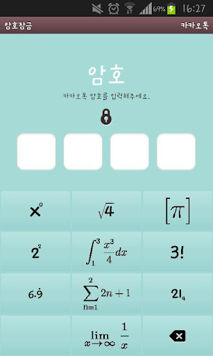 잠금화면 번호를 각종 수학기호로 설정한 카카오톡 테마입니다.