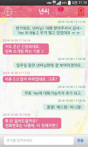 4. 맘에 드는 상대에게 Yes를 보내고 둘만의 채팅을 나눠요.