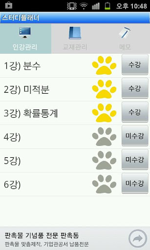 인터넷 동영상 강의 및 문제집의 chapter를 목록화하여