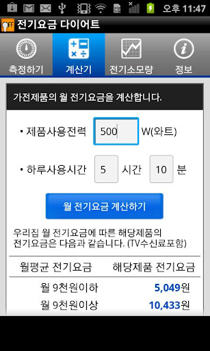 계량기를 직접 측정해서 현재사용하는 전기량을 알아보고 이를 바탕으로 1개월의 전기사용량 및 전기예상요금을 알 수 있습니다.