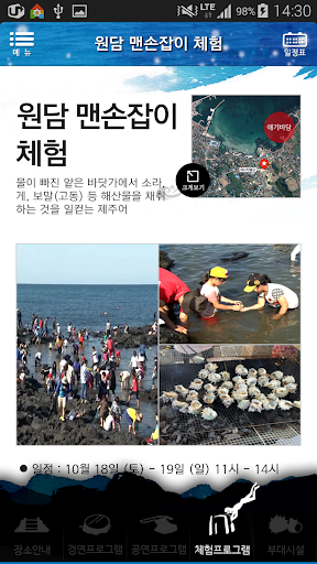 제주해녀축제 행사로는 상군바당, 애기바당, 불턱, 고치할디 등 다양한 볼거리, 먹거리, 즐길거리 등을 준비하였습니다.
