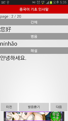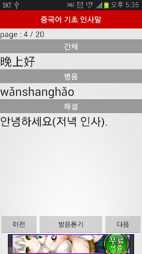 한자와 병음 그리고 원어민의 발음을 들을 수 있습니다.