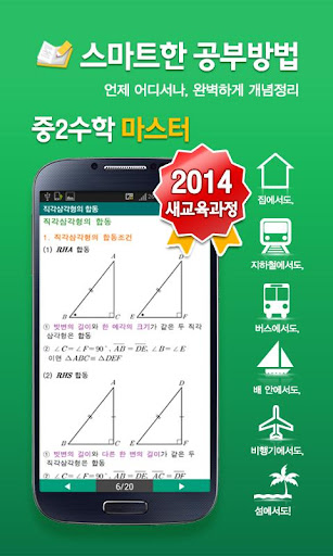 중2수학 마스터는(2014 새과정)은 2014년도에 개정되는 중학교 2학년 수학과정을 정리한 앱입니다.