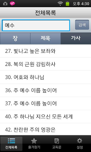 - 장, 제목, 가사 기준으로 곡 검색