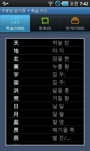 1. 학습 카드를 천자 학습(1字)과 구문 학습(4字)으로 나누어 천자문을 학습할 수 있습니다.