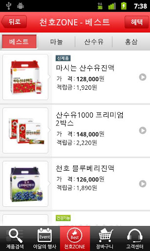 제품마다 신제품, 행사제품, 특별구성, 건강기능식품등 한눈에