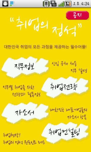 공채에 지원하는데, 입사원서를 작성할 때 직무에 대한 자세한 설명으로 도움을 주는 취업필수어플! 취업의 정석 안드로이드 버전 입니다.