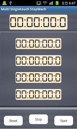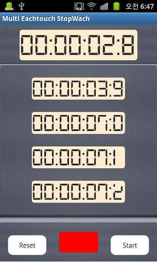 - 스톱워치 실행 후 5가지 경우에 대하여 각화면 터치하여 측정