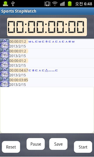 - 스톱워치 실행 후 단계적으로 시간을 연속하여 측정