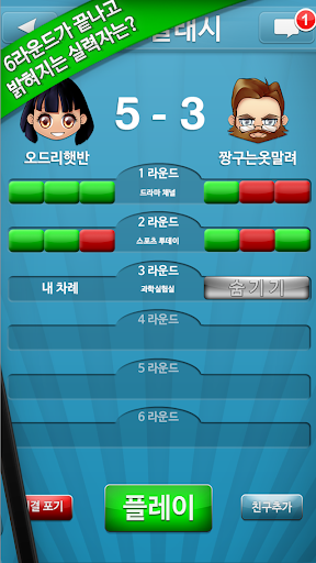 한국의 역사, 문화, 사회, 연예, 지구촌 시사 상식 등등 다채로운 카테고리를 선택해 6라운드의 퀴즈 대결을 펼칩니다. 이미지 퀴즈도 놓치지 마세요.