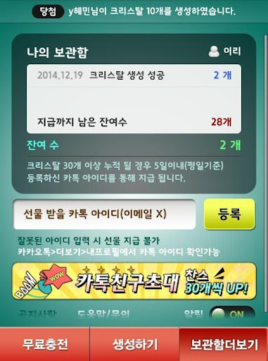 생성기를 통해 매일매일 팡팡 터지는 크리스탈을 받아가세요~!!