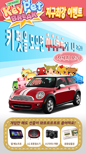 스테이지를 클리어할수록 쌓이는 키펫 카드로 룰렛을 돌려 다양한 보상을 받아 보세요! BMW 미니쿠페가 사은품으로