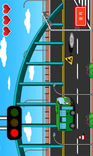 1. 운행놀이 - 운행할 버스를 선택한 후, 1) 출발, 정지하기, 2) 차선 변경하기, 3) 신호 지키기, 4) 공사장 피하기 등, 모든 정류장을 거쳐 버스를 운행하며 목적지인 놀이공원까지 가는 놀이예요.