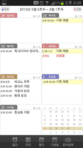 ◆ 기능 - 일정관리, 디데이, 캘린더, 음력 달력, 음성입력