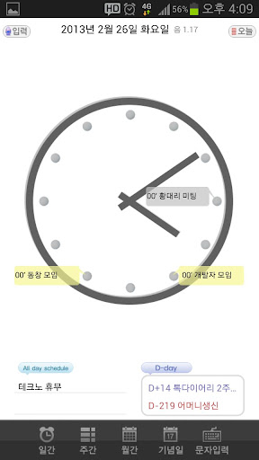1. 아날로그 시계 형태의 일간일정 페이지 (시계위의 원하는 시간을 클릭하는것만으로 일정입력이 가능합니다)