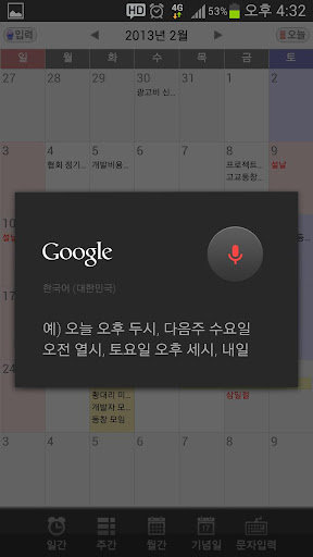 5. 융통성 있는 음성인식 입력 ("2011년 8월21일 오후 2시" 라고 입력하셔도 좋습니다. 하지만 "내일 오후 두시"라고 입력하셔도 또는 "다음주 화요일 오후 네시" 라고 입력하셔도 원하시는 날짜와 시간이 입력창에 입력되어있을것입니다)