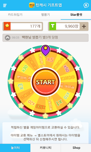 별과 게임권이 무료로 매일 팡팡터지는 일일룰렛에 꼭 참여하셔서 teen cash를 좀더 빠르게 받아가세요