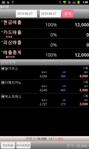 거래명세,영수증,계산서,일마감 출력가능(불루투스 롤 영수증프린트 전용)