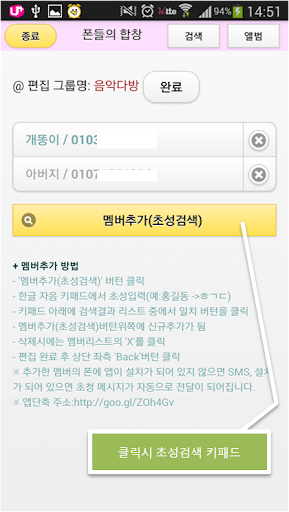 - 그룹을 클릭하여 멤버를 초성으로 검색을 하여 추가를 합니다.