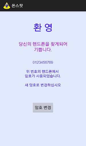 당신의 암호 문자를 받은 후, 잃어버린 스마트폰은 주기적으로 '휴대폰을 분실하였습니다. 다음 전화번호로 전화주시면 감사하겠습니다. 010-1234-5678(예를 들어 지인의 스마트폰 번호)'라고 말합니다.