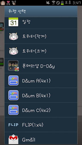 다양하고 귀여운 위젯을 다운받아 적용할 수 있는