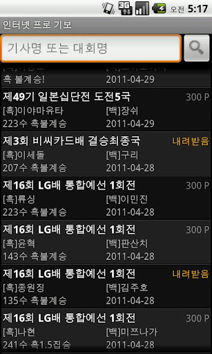 ※ 바둑기보는 한국기원과의 계약을 통하여 지속적으로 제공됩니다.