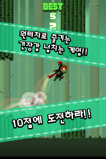 - 화면을 터치하면 점프를 뜁니다.연속점프를 뛰어 대나무를 통과하세요.