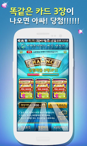 1) 매일 매일 공짜 충전되는 찬스로 카드 세장을 뒤집어 주세요!
