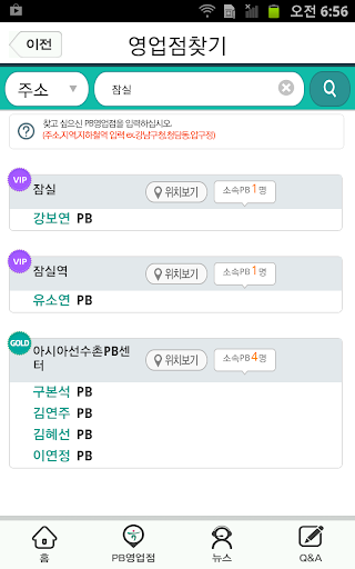 -원하는 지역의 PB/WM영업점 위치와 해당 영업점 PB/WM의 정보를 쉽게 찾을 수 있습니다.