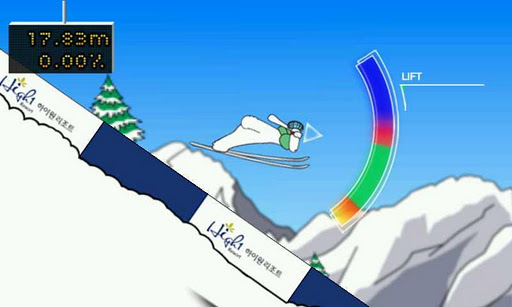 - 슬로프의 끝에서 버튼 릴리즈하여 점프(점프 타이밍에 따라 거리 증감)