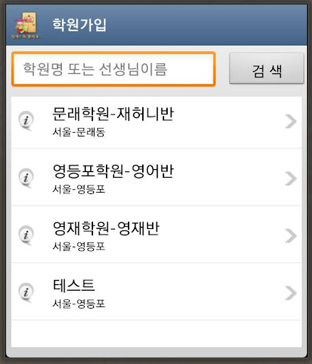 해당학원을 선택해 한번터치로 간단히 가입합니다