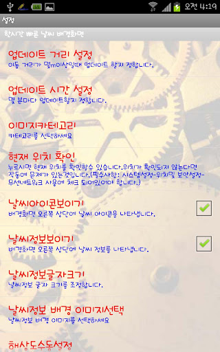 배경화면->라이브배경화면->한시간빠른날씨배경화면 누르시면 완료입니다~ ^^