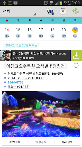 ④ 음식 정보를 설치된 칼렌더(달력) 앱으로 보낼 수 있습니다.