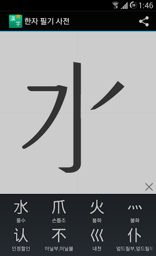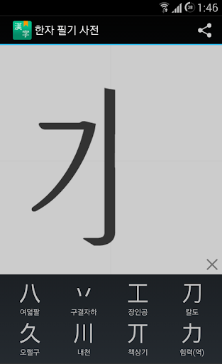 실시간으로 한자를 필기로 인식하여 근접한 한자들이 하단에 바로 표시됩니다.