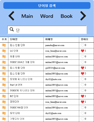 - 검색기능으로 다른 사람과 영어 단어 및 단어장 공유