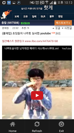 앱에서 제공하는 컨텐츠는 핫게 모바일웹 페이지의 컨텐츠와 동일한 내용이 래핑됩니다.