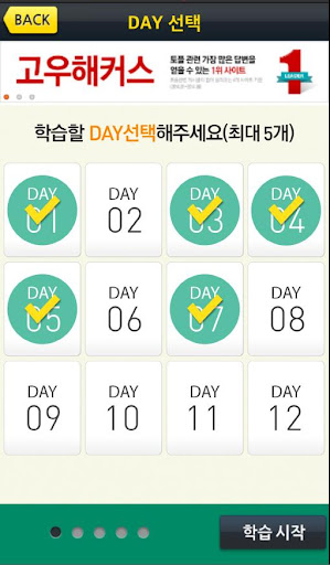 2. 취약한 Day 완벽 학습을 위해 Day 5개까지 선택하여 게임 가능