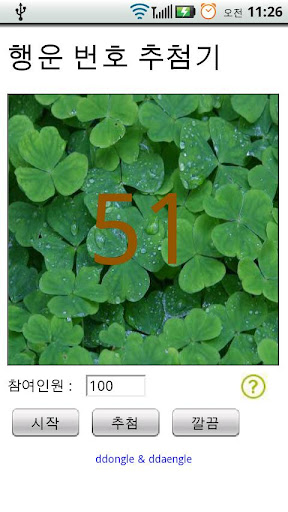 사용방법은 참가인원수를 입력하고 시작 버튼을 클릭하면 번호가 춤을 춥니다.