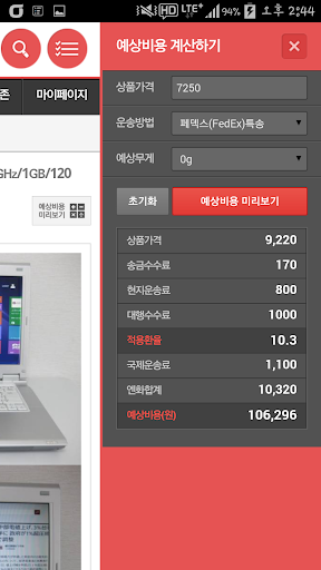 4. 구매에 앞서 미리 예상금액을 알수 있는 퀵메뉴.