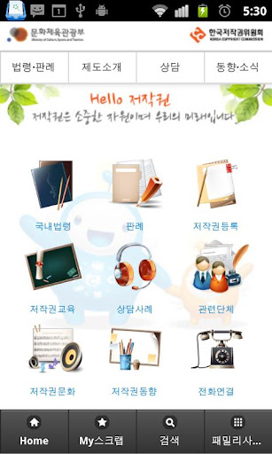 저작권 법령, 판례, 주요제도, 상담사례 등 저작권에 관련된 정보를 한번에 볼 수 있는 저작권 애플리케이션을 무료로 보급합니다. 저작권에 대한 궁금증을 ‘헬로 저작권’에서 풀어 드립니다.