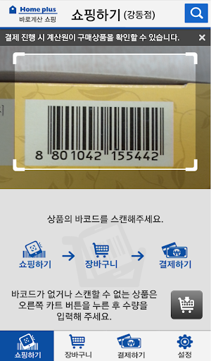 - 구매하고자 하는 상품의 바코드를 스캔하여 바로계산 쇼핑 장바구니에 담는다.