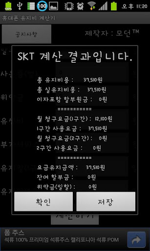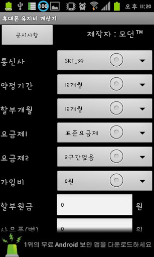 휴대폰요금 계산기,계산기,유지비,유지일,할부원금,SKT,KT,LG U+,LGT,T,SHOW