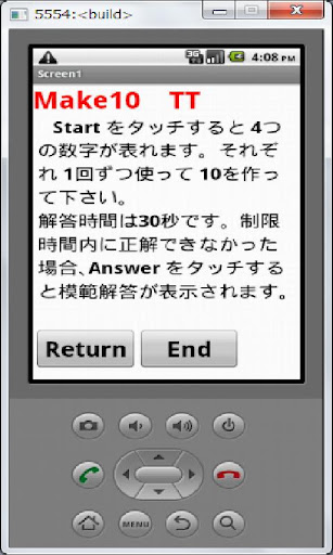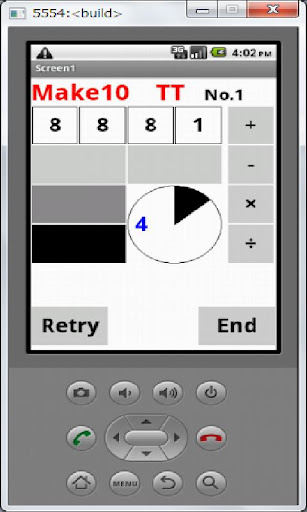 4つの数字で10を作るゲームです。1問あたりの試技可能時間は