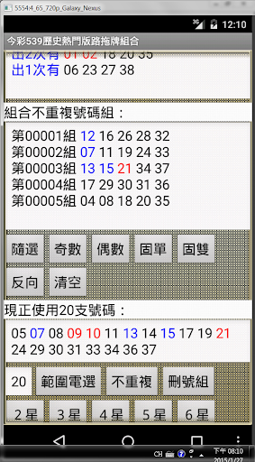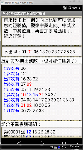 今彩539歷史熱門版路拖牌組合功能:自動獎號更新隨開即用版路拖牌並結合歷史獎號而生成之號碼。專攻2星3星用戶使用。歷史版路拖牌出現之號碼。觀察中獎走向、中獎次數、中獎位置,再善加參考應用,實測固定跟其中一組合牌【必開】依經驗!