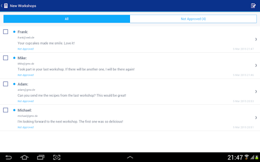 Update your 1&1 MyWebsite Blog in minutes wherever you are. Post live updates from your company's latest event, or upload images from your latest photoshoot while you're still on location. Additionally, push notifications make it possible to address your customers’ comments within seconds of them posting. The comment overview also helps you to manage new comments.