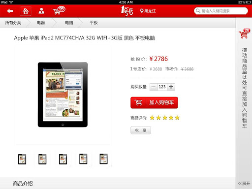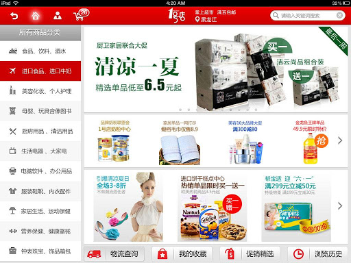从此,1号店这座大型超市可以更好的适配你的Pad,美食、百货、3C数码、服装样样齐全,动动手指就送到您家,为您省钱省力更省时间!