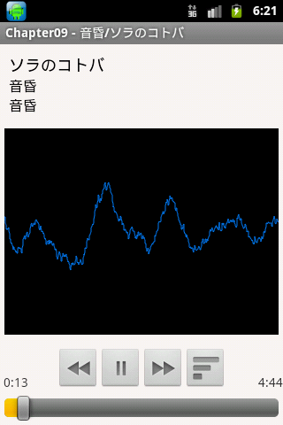 この章では「音楽プレイヤー」アプリの作成を通じて、MediaPlayerとServiceとActivityの連携(AIDL)について学習します。