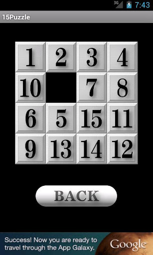 Fifteen Puzzle is a sliding puzzle. The object of the game is to order the tiles from 1 to 15.