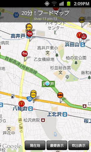 「20分!フードマップ」は、最寄りのファーストフード・チェーン店を地図表示するためのAndroid向けアプリです。